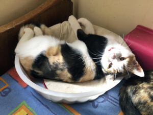 Kijk nou wat een knap meisje. Haar naam is Ariel! Een mooi lapjespoesje, op zoek naar haar eigen huis. Ze is een heel lief meisje, speelt graag met haar zusjes en de andere katjes in huis. En ze is er dol op om geaaid te worden. Omdat het in het huis van Poly, onze vrijwilliger op Lesbos, nogal druk is krijgen ze niet alle knuffels die ze graag zou willen. Ariel is dus op zoek naar een huis waar er veel aandacht voor haar is en er een hoop knuffels voor haar zijn. Waarschijnlijk zal ze in het begin nog even moeten wennen aan haar nieuwe mensen en huis, maar dat komt zeker goed.